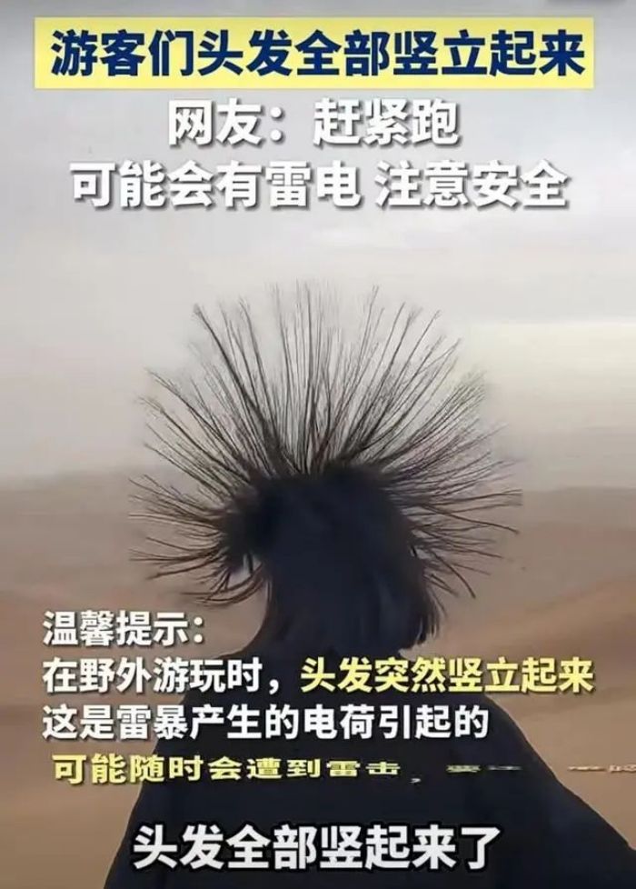 當(dāng)身體毛發(fā)豎起,身上有螞蟻爬走感,物體周?chē)霈F(xiàn)藍(lán)色光暈或空氣中發(fā)出噼啪聲,都是發(fā)生雷擊的前兆。